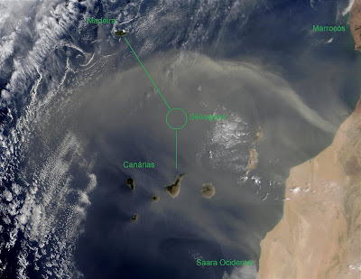 Por vezes, os ventos de Leste e de Sul precedentes do continente africano carregados de poeiras e massas de ar quente recordam a proximidade do Deserto do Saara, aumentando as temperaturas e reduzindo a humidade do ar. As temperaturas rondam os 15 e 20 graus centígrados, no Inverno. A presença de numerosas